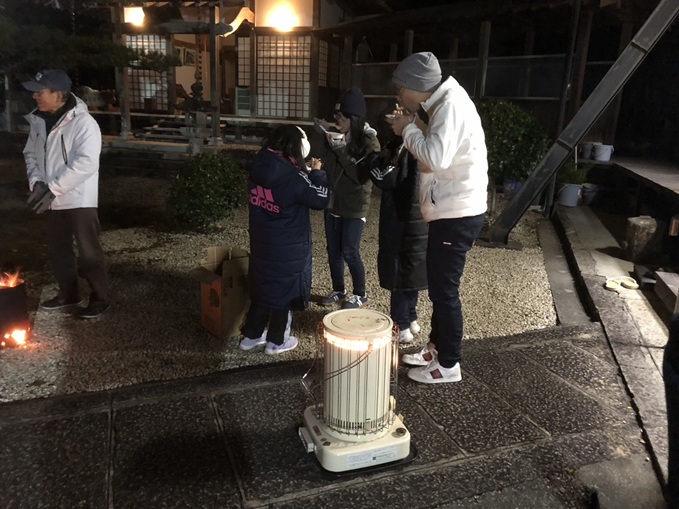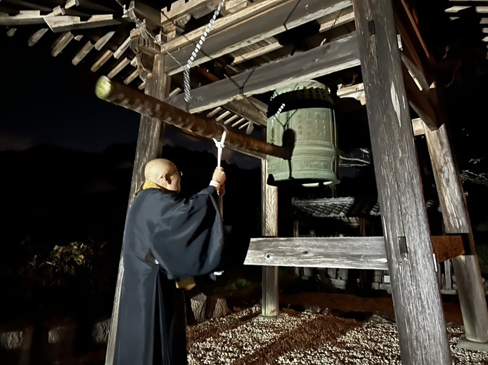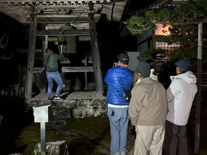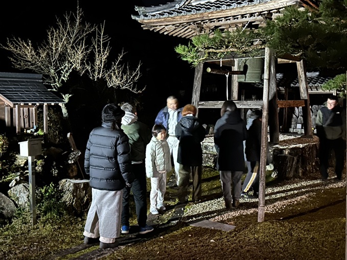 令和7年12月31日_大雲寺除夜の鐘、大晦日 除夜の鐘は、大晦日の夜から元旦にかけて寺院で撞かれる鐘のことです。人間の煩悩(迷いや苦しみ)を108回撞くことで取り払い、清らかな心で新年を迎える行事です。 寒い中、約50名の参加者のもと、除夜の鐘を撞きました。 つき終わった参加者には、ぜんざいが振る舞われました。 1.会場 2.除夜の鐘撞き 3.ぜんざいで温まる 令和8年も、幸多き年になりますように。 大雲寺総代会・イベント委員会