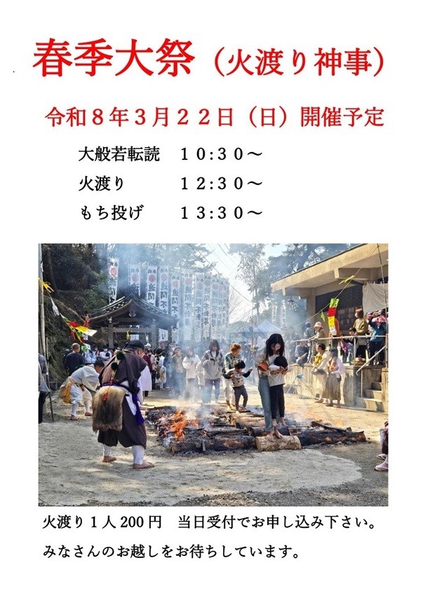 (※Poster for the Spring Grand Festival (Fire-Walking Ritual) – March 22,