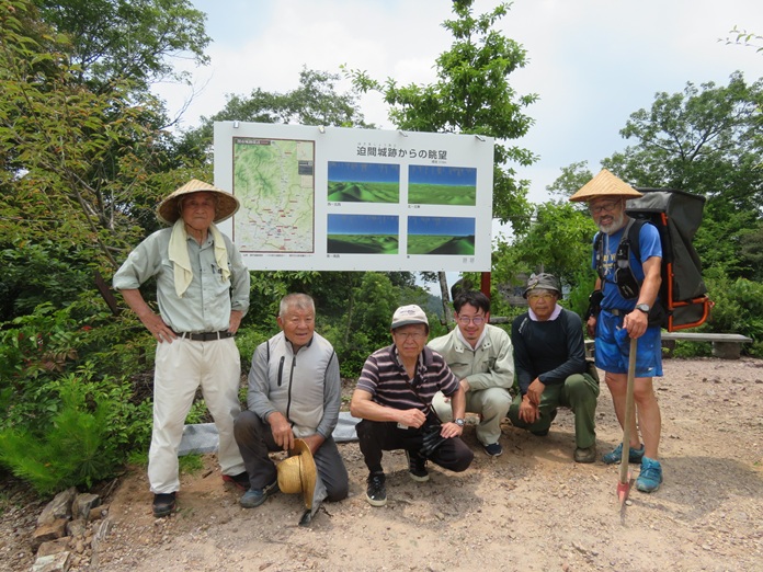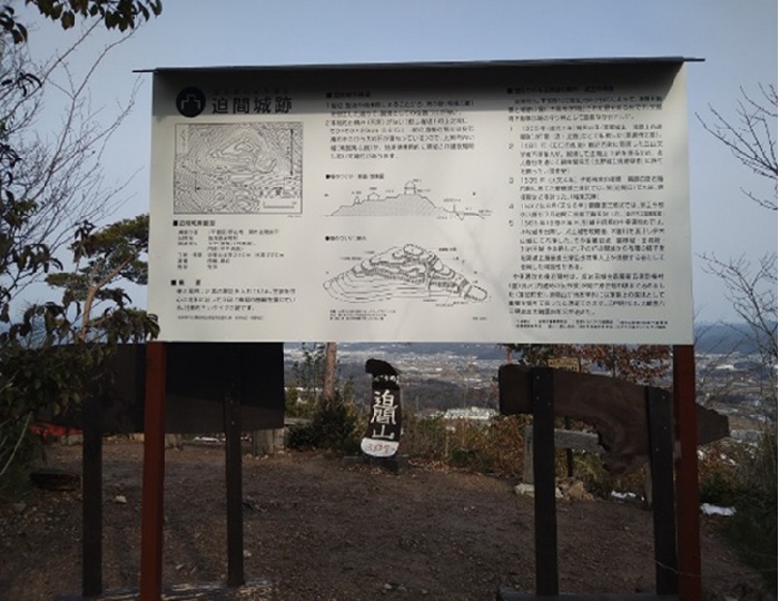 迫間山に登山して看板と回りの展望を視に来ていただけると幸いです。歴史の感動をご覧ください。