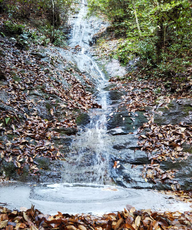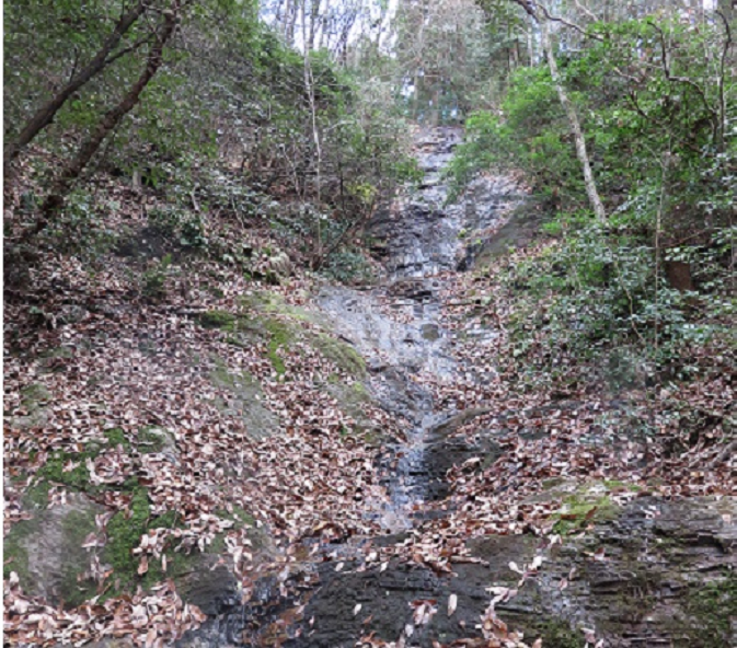 迫間幻の滝 【 幻の滝 】 正溪寺の近くからわき道を進み山に入る。山に雨が降ったときのみに現れる。 観光地図に載せてあります。 1.写真 水がない時の状態です。 2.写真 幻の流星の滝の件で水量が多い時の写真です。