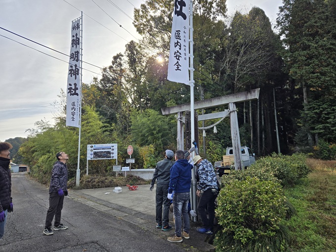 活動報告35(区)_令和7年11月23日五穀感謝祭開催 秋空のもと、神明神社にて五穀感謝祭を開催しました。五穀感謝祭とは、その年に収穫された新穀に感謝し、神々に奉る日本の伝統的な祭です。 1. 会場準備 2. 五穀感謝祭 3.餅投げ 五穀感謝祭を区民のみなさんのご協力で、無事開催することができました。ありがとうございました。 田口仏塔・下迫間5役