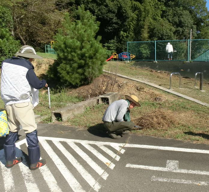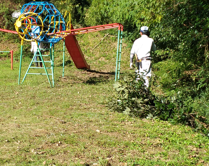 活動報告23(五)_五役によるちびっ子広場側草刈り、松茸山看板設置作業 令和6年9月13日(土)に五役によるちびっ子広場草刈り、松茸山看板設置作業を行いました。 1.ちびっ子広場側草刈り 2.松茸山看板設置作業