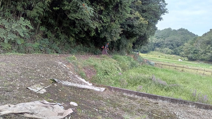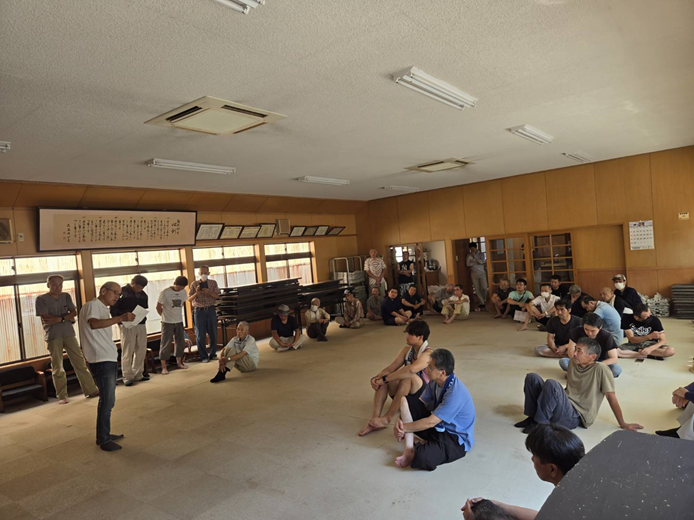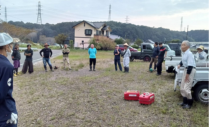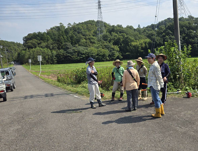 活動報告25(区)_農道修理及び常会(松茸山競売)令和6年9月8日 <作業前挨拶> (公民館前) (大雲禅寺前駐車場) <作業の様子> (作業後休憩) <作業後、公民館で常会開催> ※松茸山競売の結果は回覧板の通りです。 暑い中草刈り作業、ありがとうございました。 下迫間自治会、五役、各役員