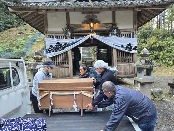 活動報告35(区)_令和7年11月23日五穀感謝祭開催 秋空のもと、神明神社にて五穀感謝祭を開催しました。五穀感謝祭とは、その年に収穫された新穀に感謝し、神々に奉る日本の伝統的な祭です。 1. 会場準備 2. 五穀感謝祭 3.餅投げ 五穀感謝祭を区民のみなさんのご協力で、無事開催することができました。ありがとうございました。 田口仏塔・下迫間5役