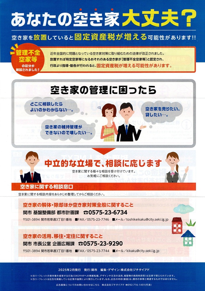 関市ー空き家対策の内容です。御相談は窓口・・基盤整備部 都市計画課までお電話で、相談ください。