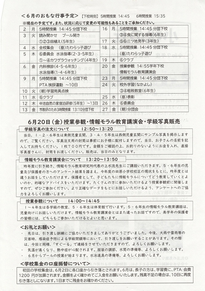 年間の行事予定