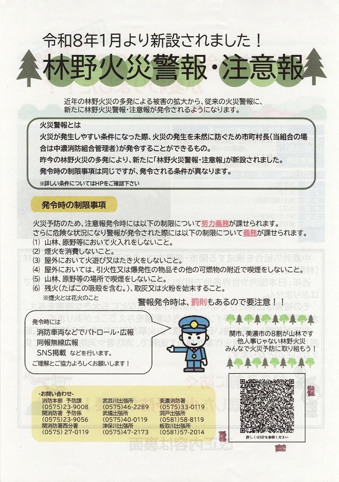 回覧板_中濃消防組合火災予防条例・・森林火災警報・注意報