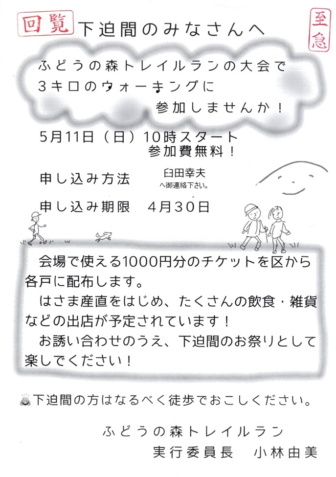 回覧板_令和7年5月11日ふどうの森3キロのウォーキング参加募集