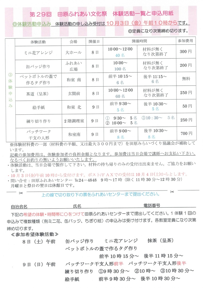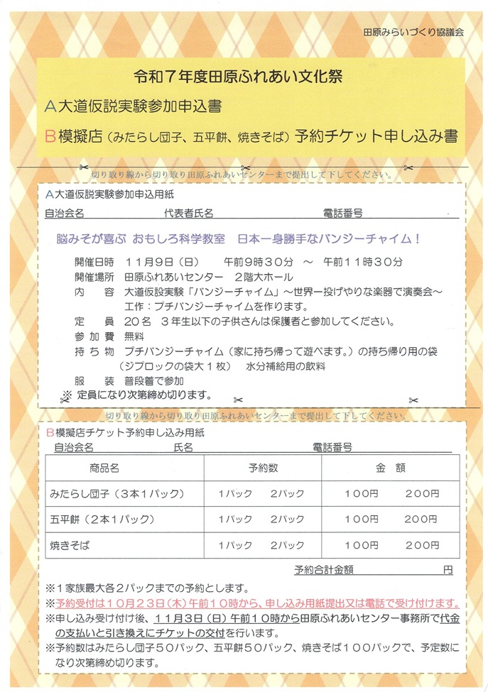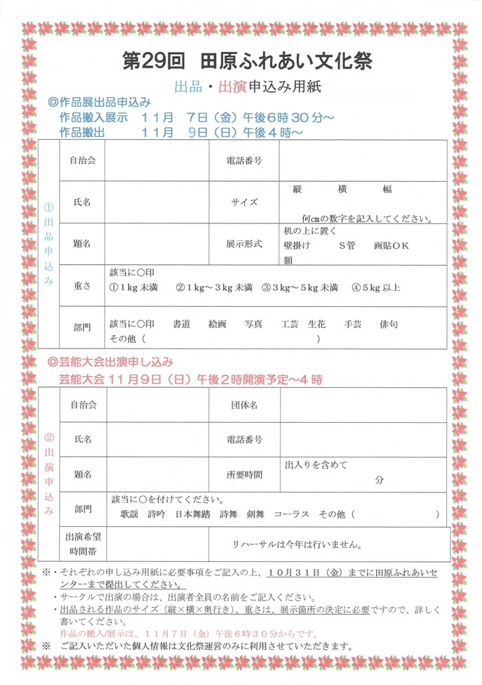 回覧板_令和7年度第29回田原ふれあい文化祭開催申込書