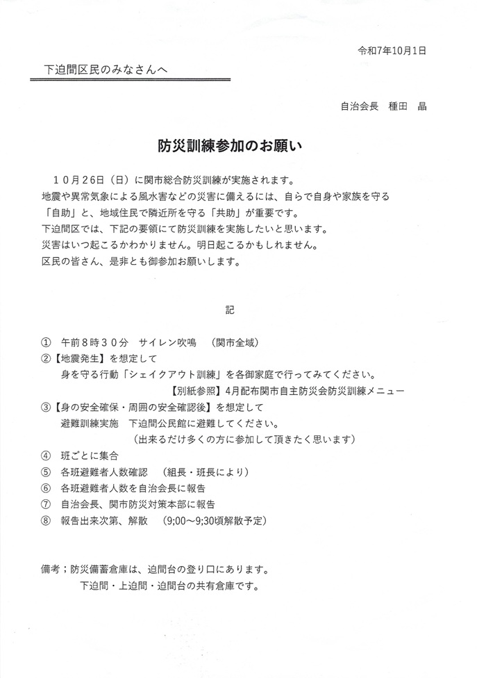 区内活動情報13_防災訓練参加のお願い