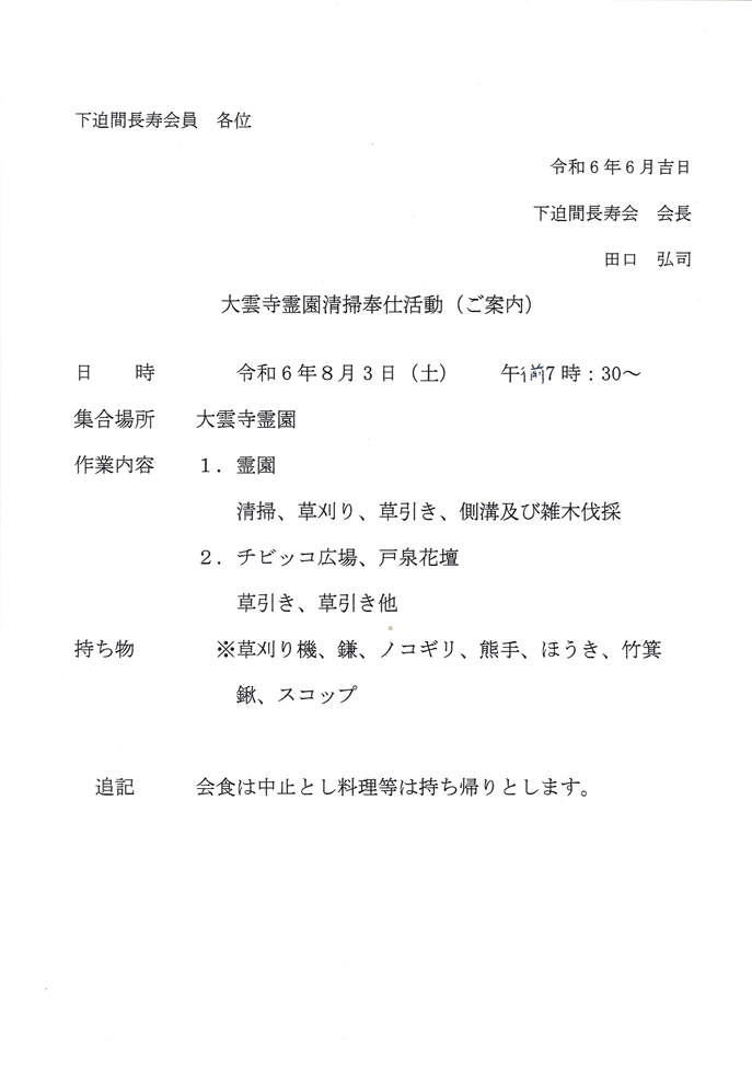 区内活動情報2_大雲寺霊園清掃奉仕活動(ご案内)